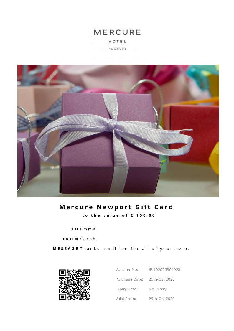 Mercure Newport allows you to purchase instantly printable gift vouchers, special offers and tickets using the Voucher Connect platform.